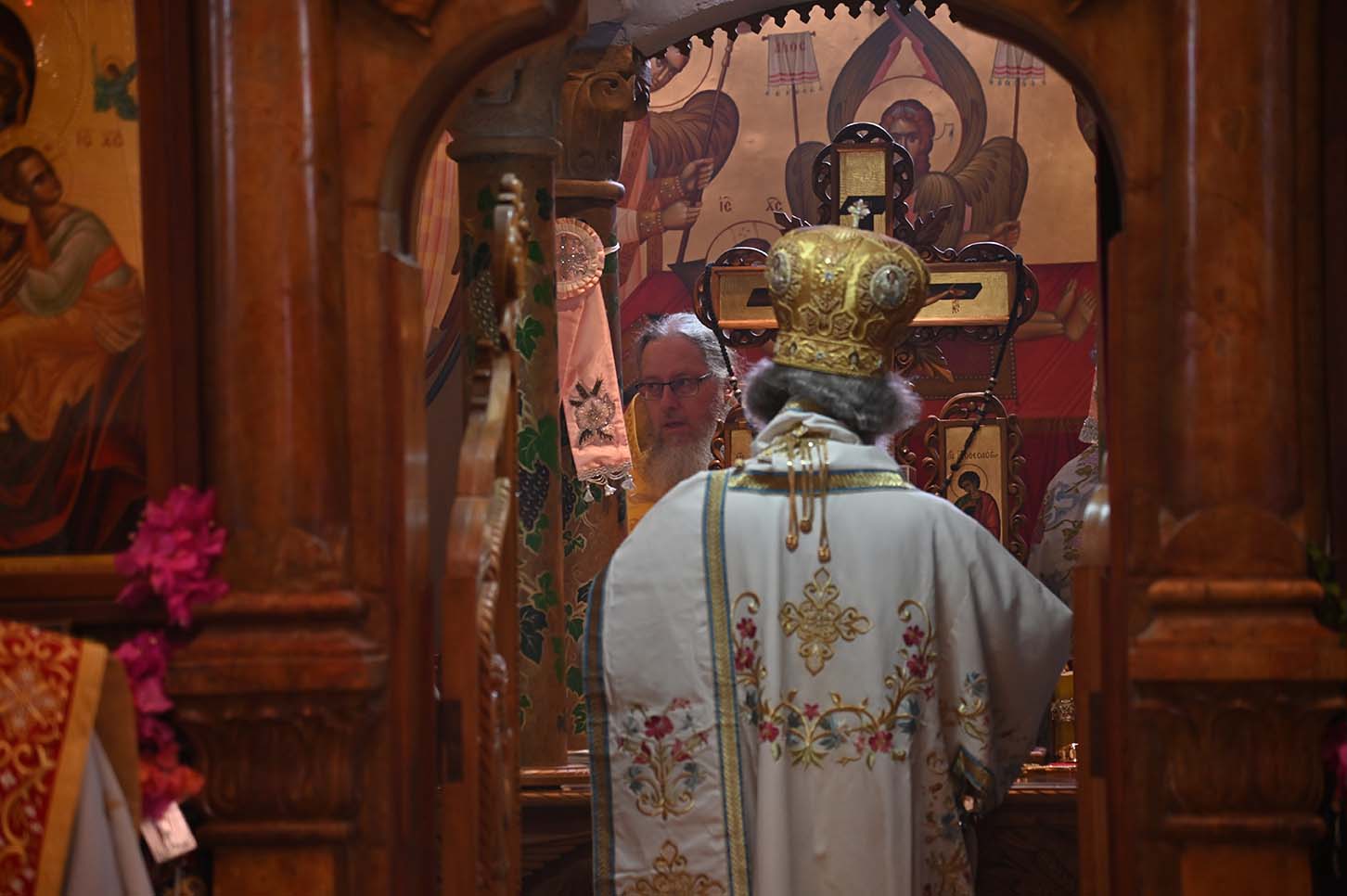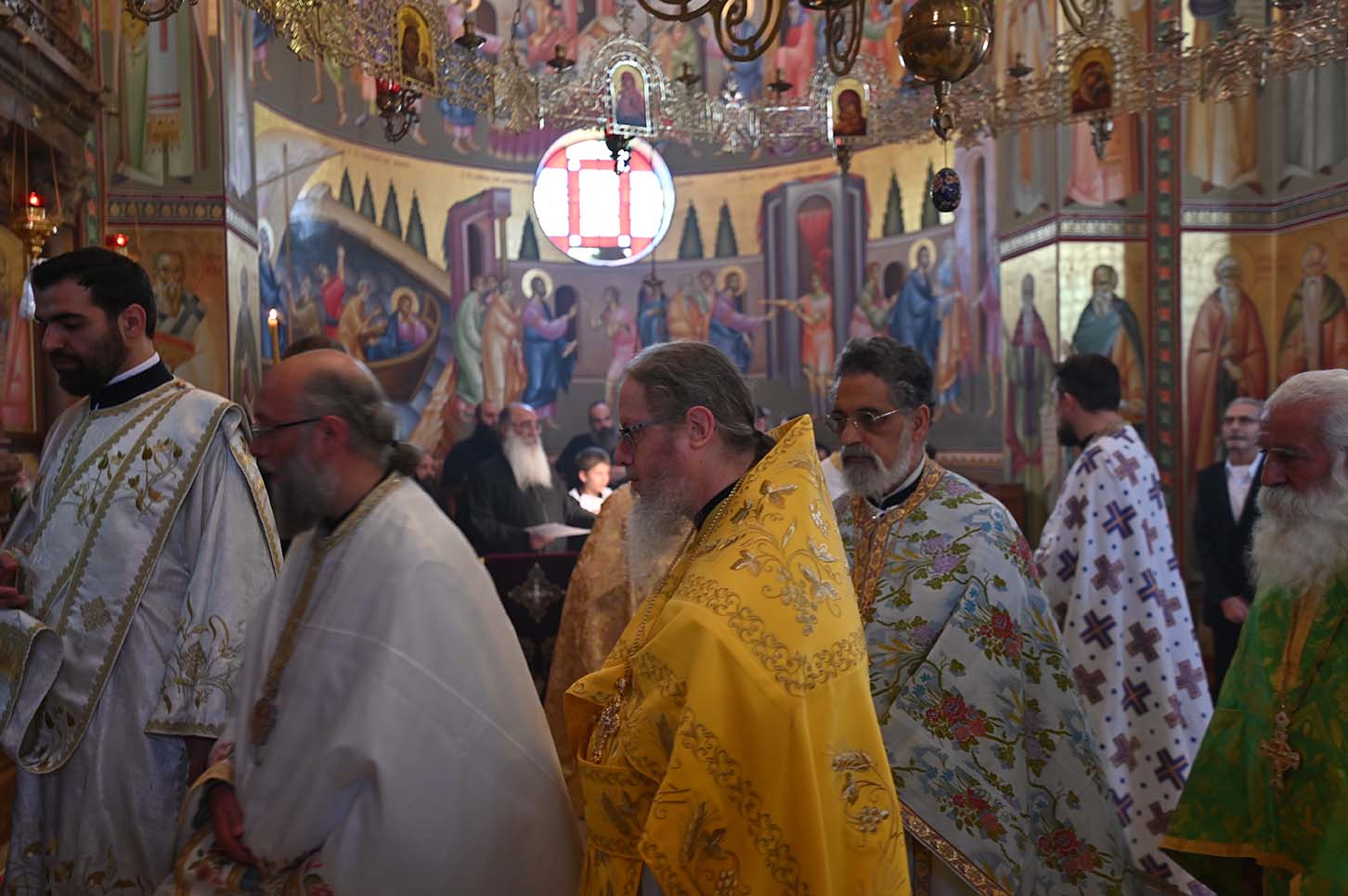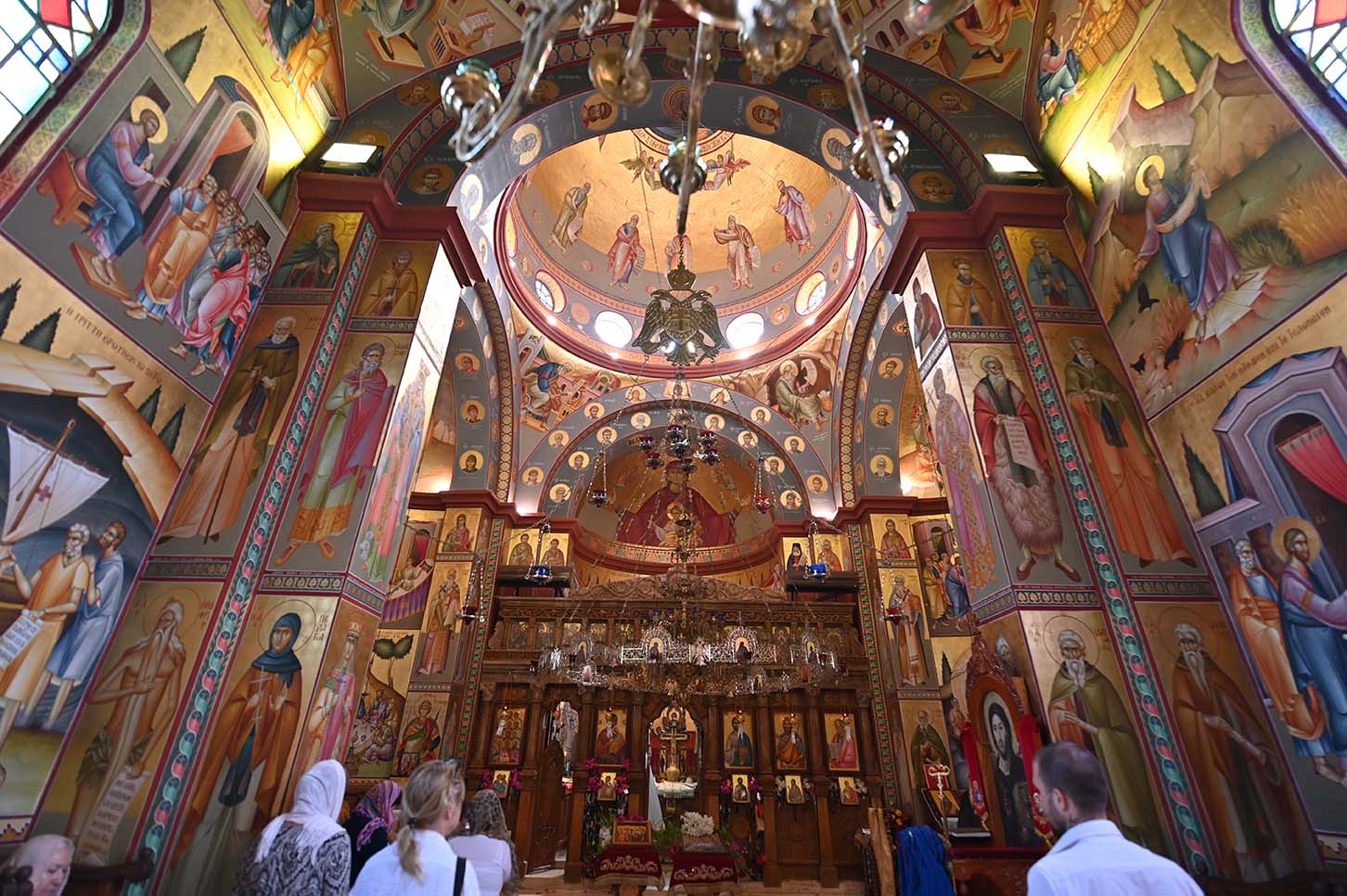 Архимандрит Роман в сопровождении монахов РДМ, отцов Авенира и Киприана прибыл рано утром в храм св. Апостолов и был сердечно встречен смотрителем монастыря монахом Иринархом. Вскоре прибыл Патриарх Иерусалимский и всея Палестины Феофил III со своей свитой. Затем Его Блаженство направился в храм для совершения Божественной литургии. Патриарху сослужили Высокопреосвященные митрополит Назаретский Кириак, митрополит Аристарх Константинский и архиепископ Исидор Иерапольский, с большим количество духовенства из разных приходов Галилеи. Хором, который пел на греческом, арабском и славянском языках, управлял Высокопреосвященный архиепископ Мадавский Аристобул. Божественная литургия была отслужена с большой торжественностью. Многие прихожане говорили по-русски, так как церковь Святых Апостолов является приходской церковью для русских верующих, проживающих на севере Израиля.